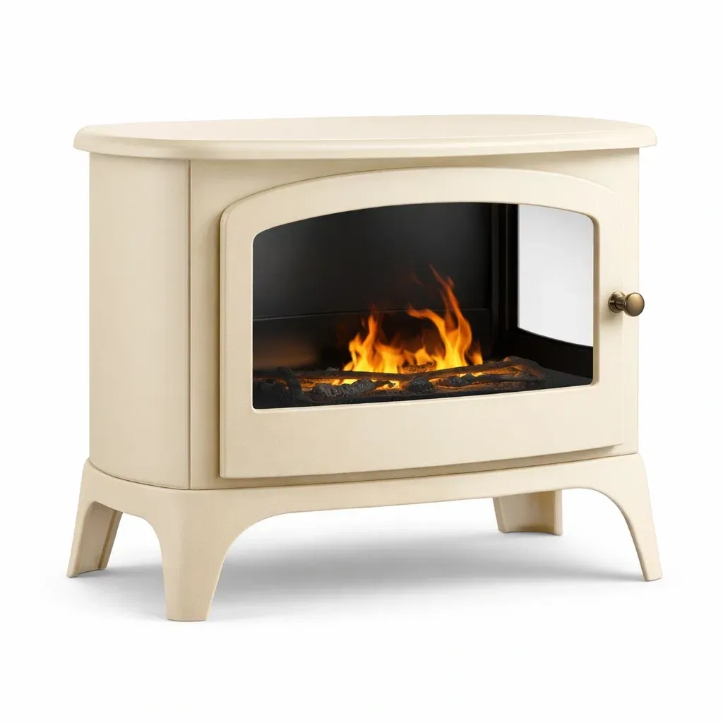 DescriptionCream steel body with a curved glass front and solid base design, creating a calm visual presence suited to interiors.