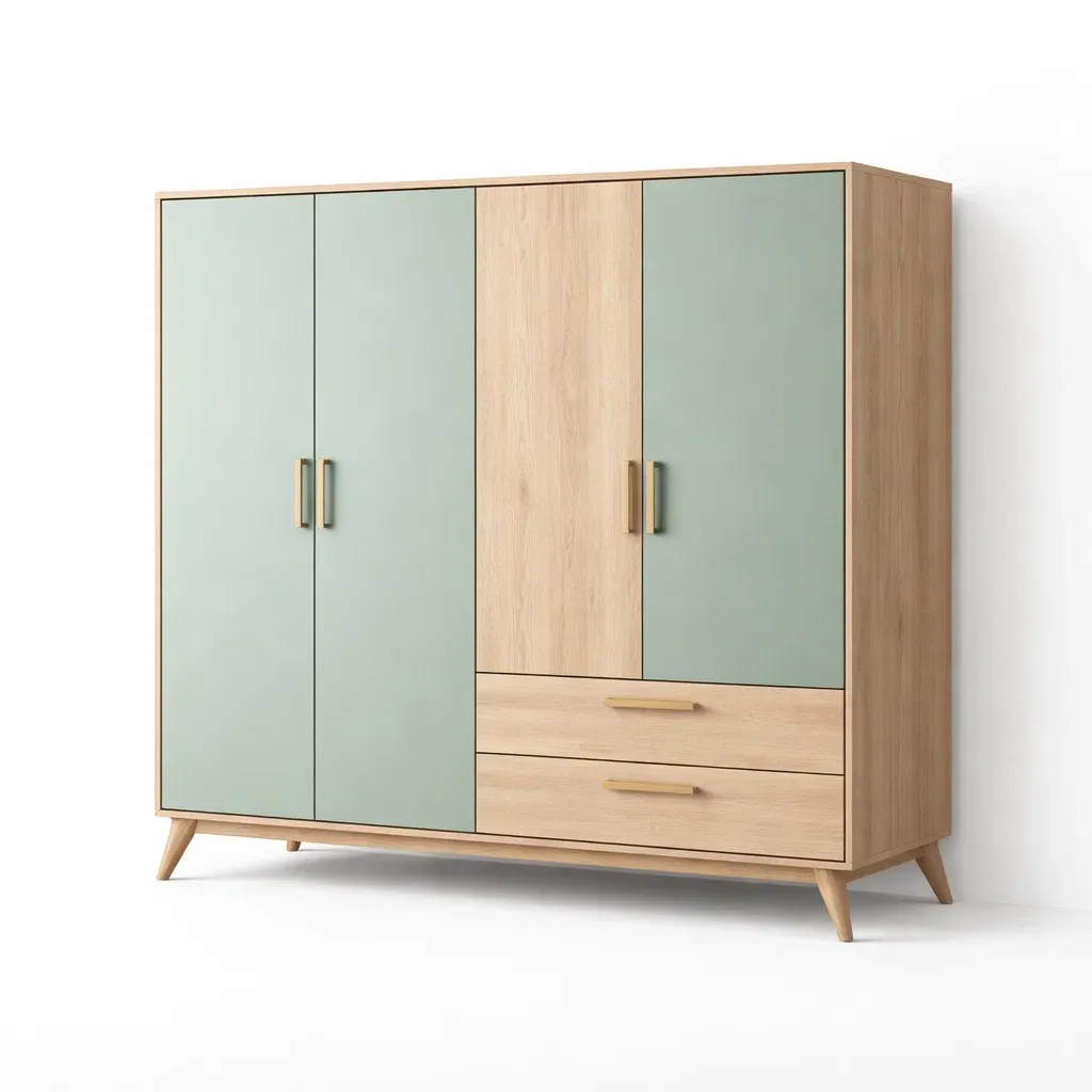 DescriptionSoft green panels combined with light wood surfaces deliver a gentle contrast and a modern, well proportioned form.